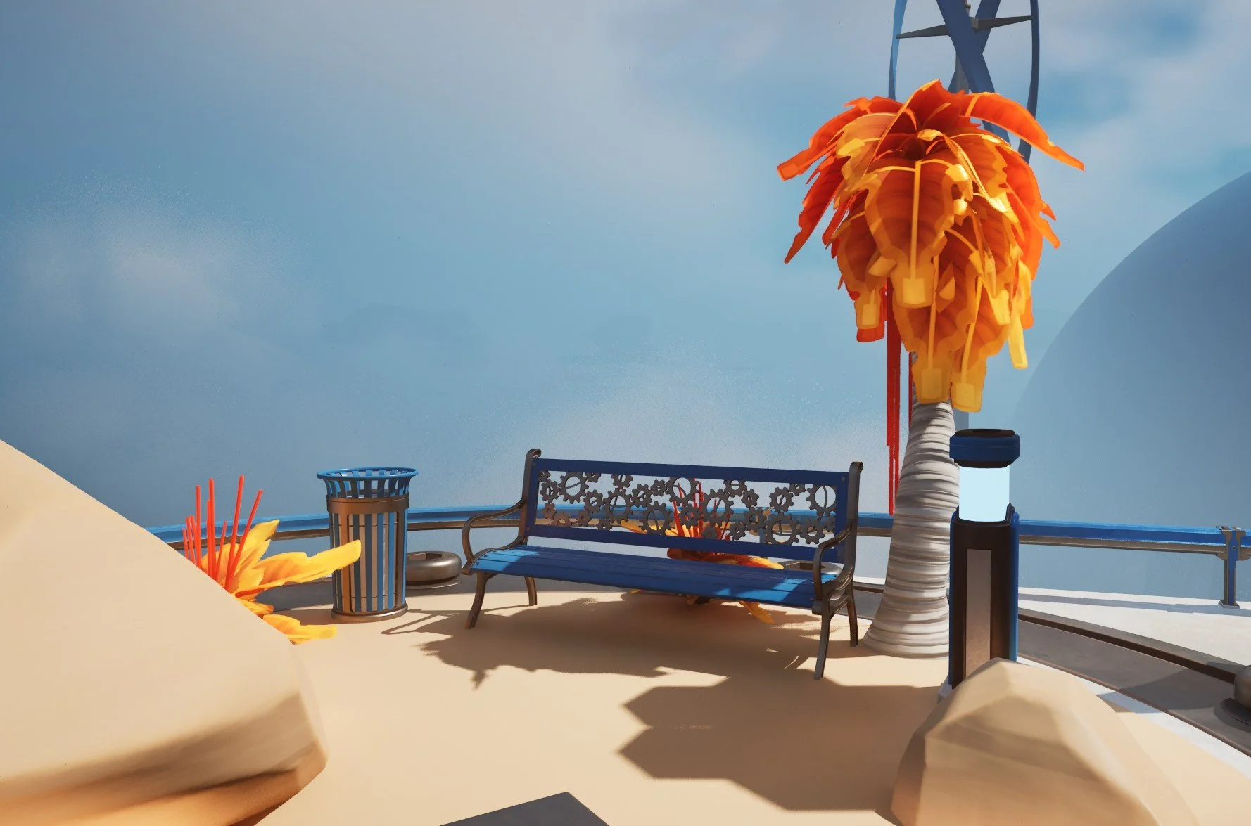Another goal I set for myself early with this level was that it should look “fun”. I wanted to emulate the feeling you get from looking at a Jak & Daxter level, where you simply want to go there because it looks fun and awesome. This would often mean creating objects where the player inherently knows what to do and simply wants to get there.